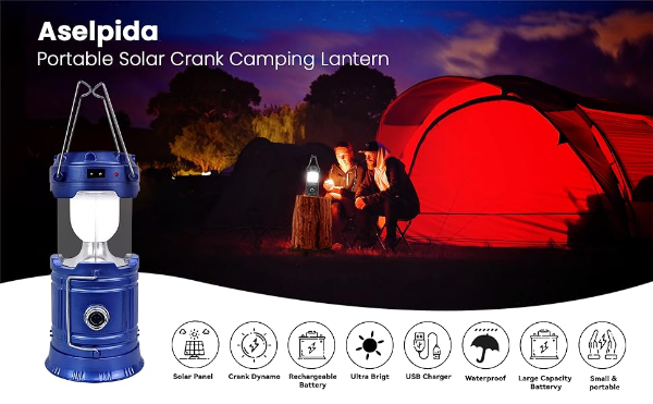 【Wide Application】This portable solar outdoor camping light with ultra-bright flashlight is suitable for work light, book light, reading light, hurricane lantern, emergency outages, and blackouts light, car auto emergency light kit, perfect for camping, hiking, fishing, mountaineering, emergency lights, tent lights, and other outdoor activities.