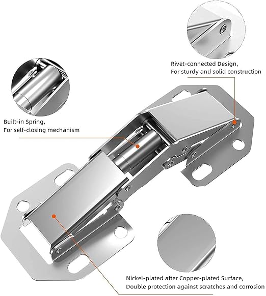 🔥90 Degree Soft Close Mount Spring Hinges, No Pre-drilled,Free screw