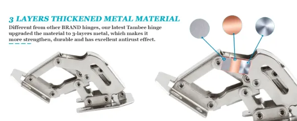 Made with cold-rolled steel and nickel and brass plating, our hinge is rust and wear-resistant, ensuring long-lasting durability and reliability.