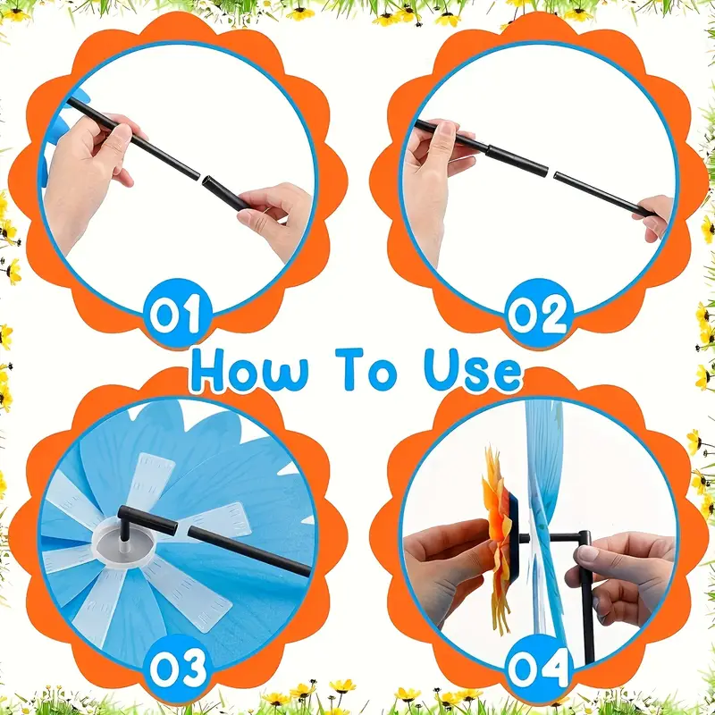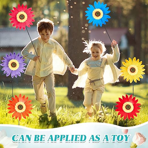 Colorful flower lawn pinwheels feature a sunflower design, with bright colors and lovely appearance, adding more beautiful visual effects to your home, easy to assemble, it can be applied as a toy or inserted in the lawn as a decoration
